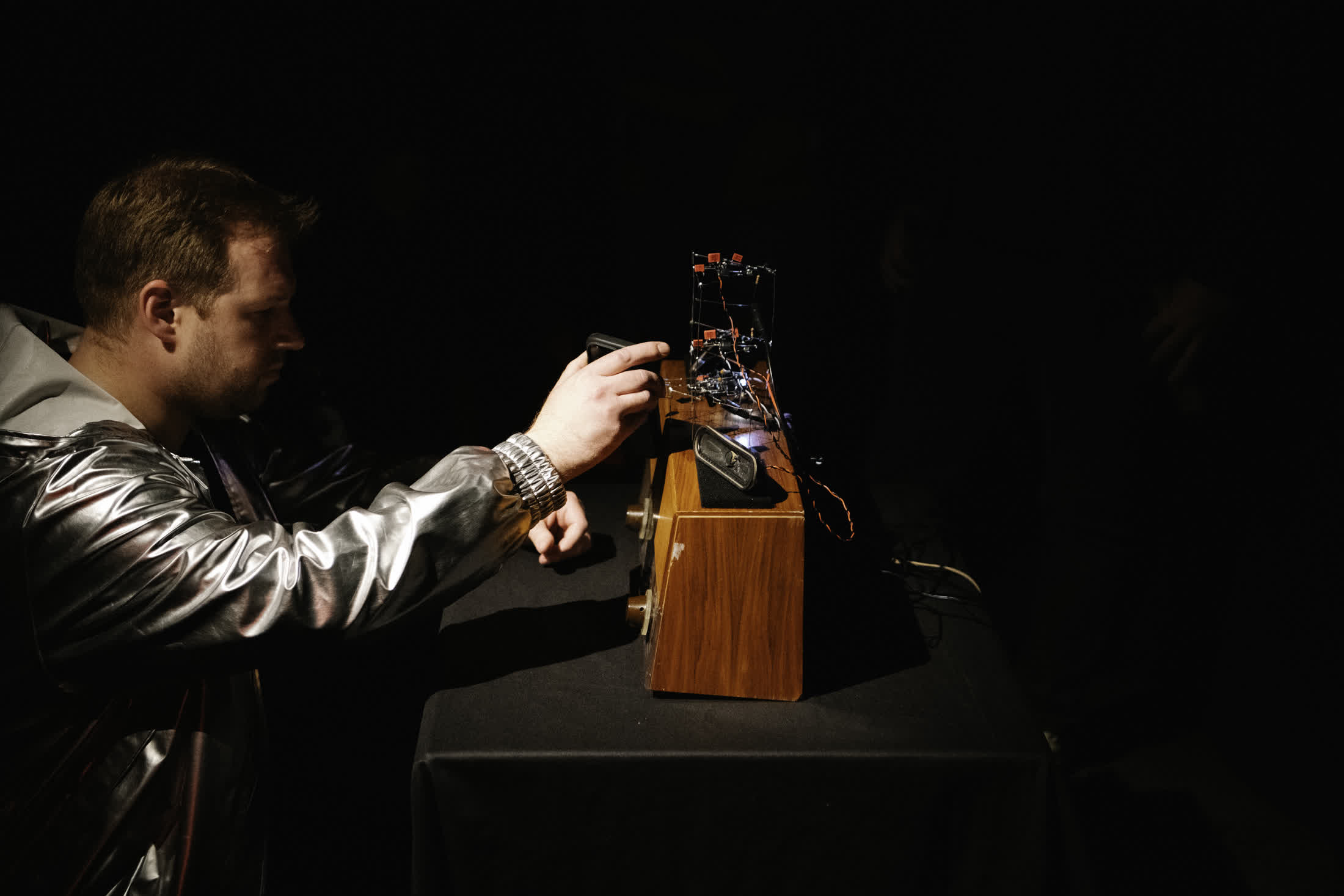 We decided to build a sonic sculpture that would process and sonify the electromagnetic interferences in the room.