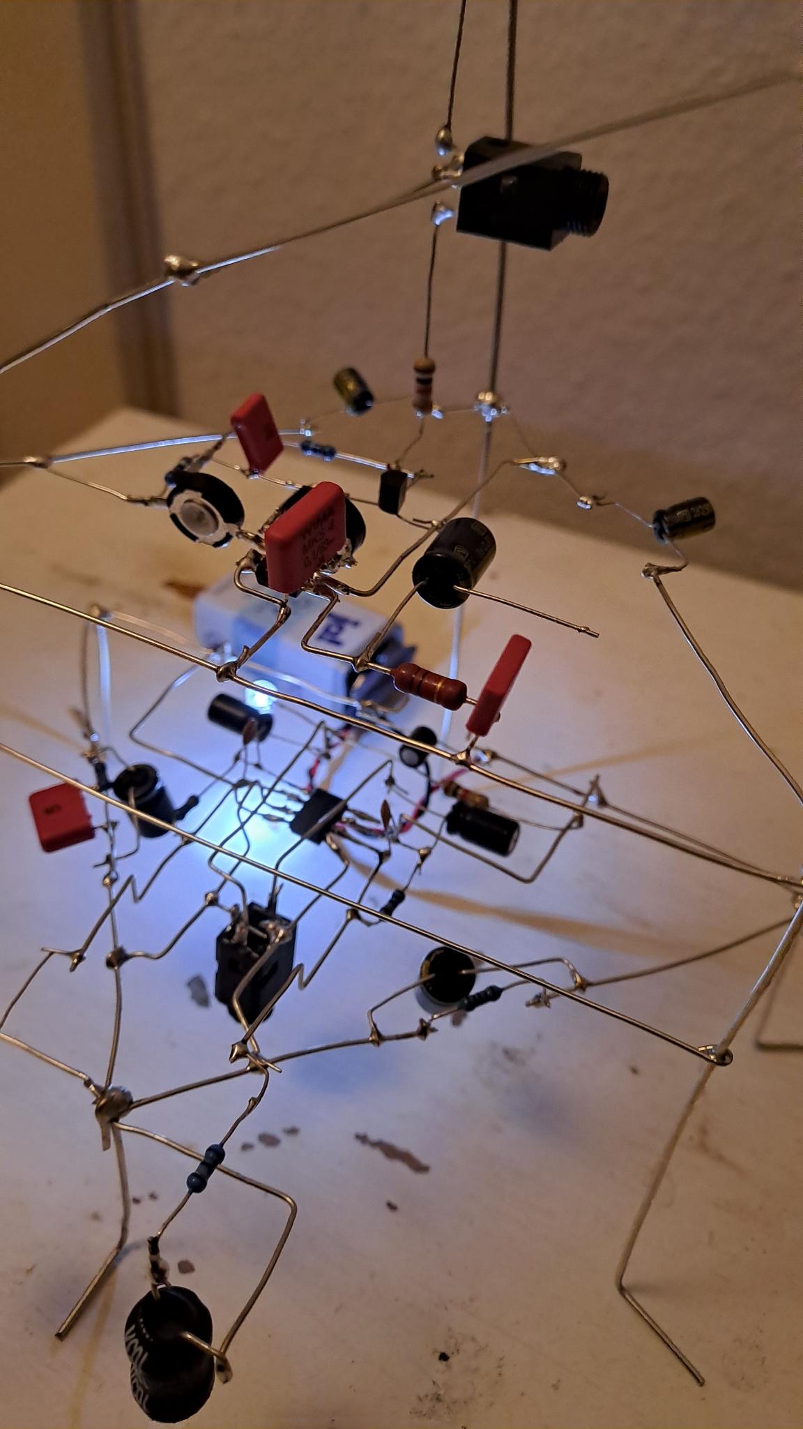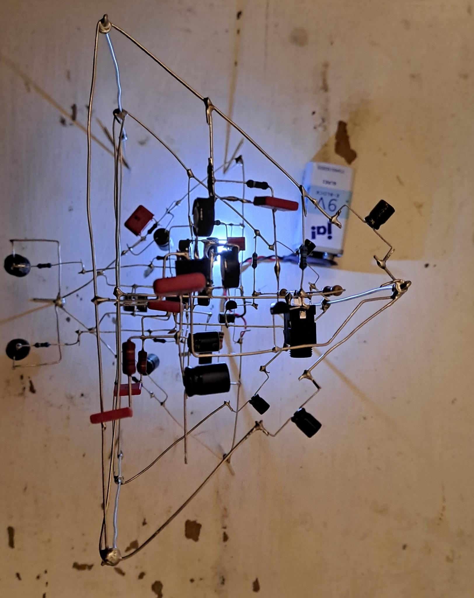 I had already been digging myself into the rabbit hole of point-to-point-soldering, strongly inspired by the works of Peter Vogel and Iona Vreme Moser.